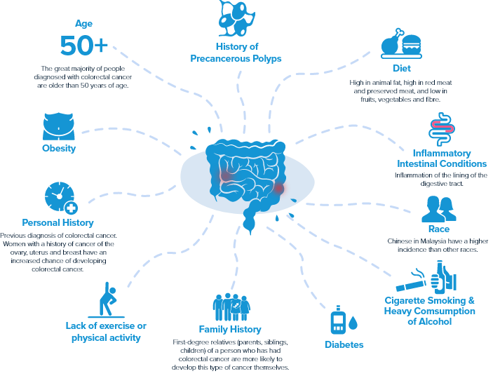 It is the most common type of cancer that men and women in Malaysia have. The incidence increases significantly after the age of 50.