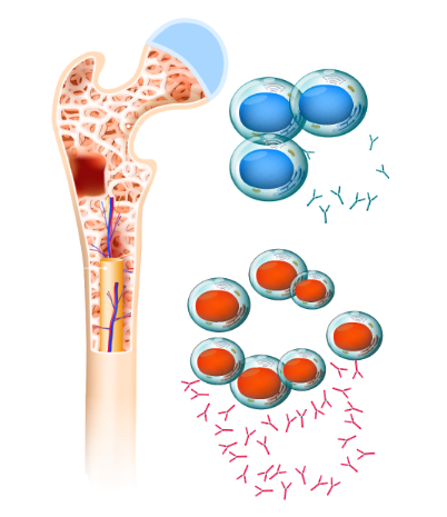 In the bone marrow, plasma cells are a type of white blood cell. As part of the immune system, they aid in the fight against infection. When cancerous, these abnormal plasma cells spread throughout the bone marrow, leaving insufficient space to produce normal blood cells.